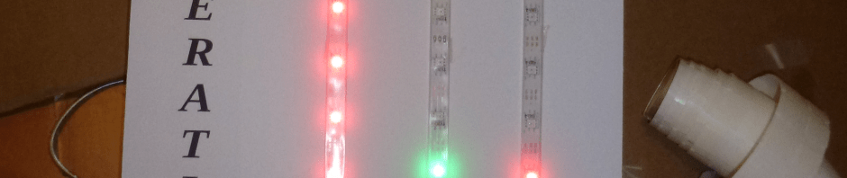 So that’s an Adafruit neopixel strip, sliced up into three sections, with little right-angle headers and jumpers wires connecting them behind the scenes. Also on the back of the foamcore: a 14-bit 3-axis accelerometer, a power distribution strip and an arduino clone sold by some folks down the road. (I like their boards particularly, because they put a bunch of 3-pin headers in the spare space, with Vcc, ground and signal all right next to each other. )