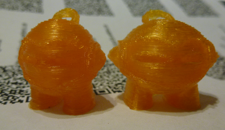 And then this happened: Everything displayed fine on Repetier’s layers-in-progress visualization, but the result was, er, not exactly the alien my 7-year-old has come to know and use in games.